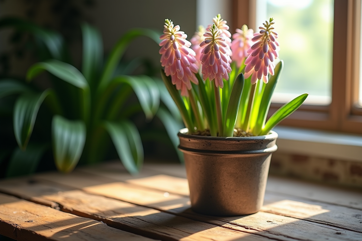 Les jacinthes en pot, avec leurs grappes de fleurs colorées et leur…