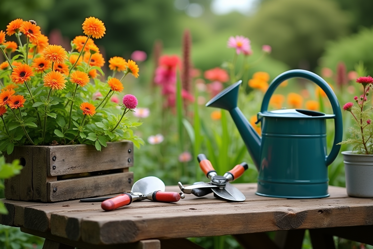 Un bon sécateur s’avère essentiel pour la taille des arbustes et des rosiers, garantissant une croissance saine des plantes. Pour les sols, une bêche et un râteau facilitent les plantations et le désherbage. Un arrosoir ou un système d’irrigation maintient le jardin hydraté, surtout lors des périodes de sécheresse.