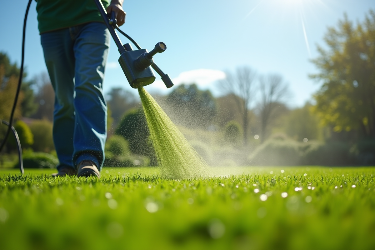 - Utilisez le bon matériel : Pour les produits liquides, un pulvérisateur permet une application uniforme. Les granulés peuvent être épandus à la main ou à l’aide d’un épandeur.