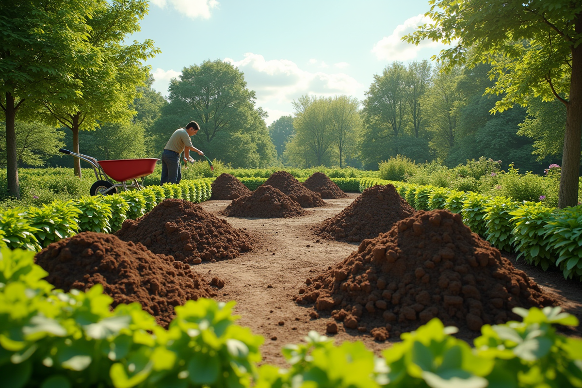 Avant de commander de la terre végétale, pensez à l’amélioration du sol déjà présent dans votre jardin. L’ajout de matières organiques comme le fumier ou le compost peut souvent suffire à revitaliser un sol appauvri. Cette méthode permet d’optimiser les ressources disponibles et d’économiser sur les coûts d’achat de terre végétale.